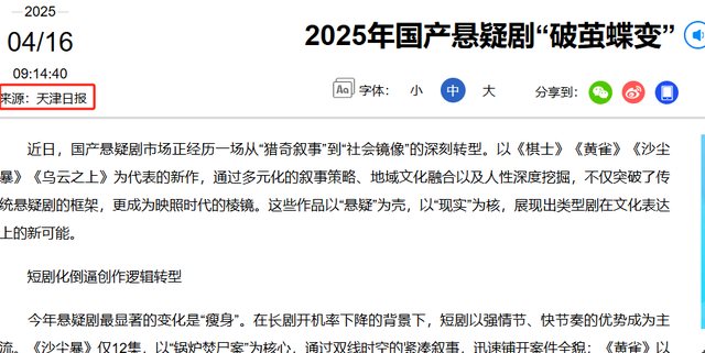 天津日报|2025年国产悬疑剧“破茧蝶变”